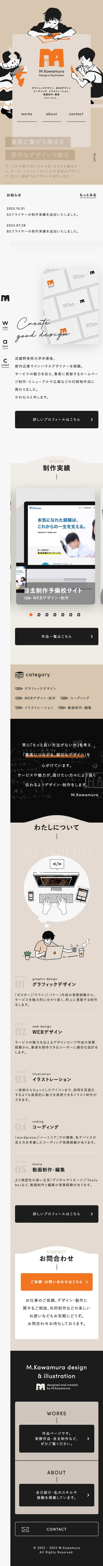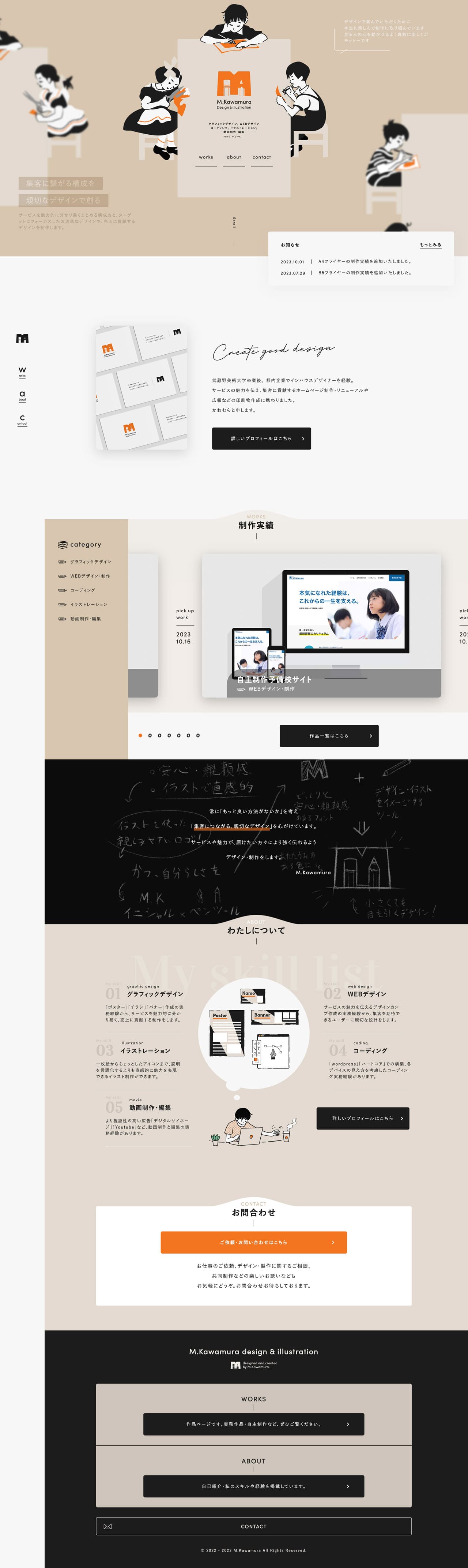 自身の強みと技術を文章化するだけではなく、忙しい方にも直感的に伝わるようにイラストで表現。 知っていただきたいことを順番に説明し、ユーザーにとって見やすい親切な作りも意識しました。ローディングアニメーションからイラスト、細部のアイコンまで全て自分で制作しました。